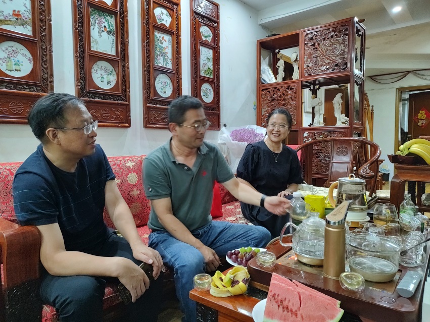 与宁波健享源新材料科技有限公司总经理腾丽华博士、宁波市鄞州区统计局主任科员马祥陆座谈