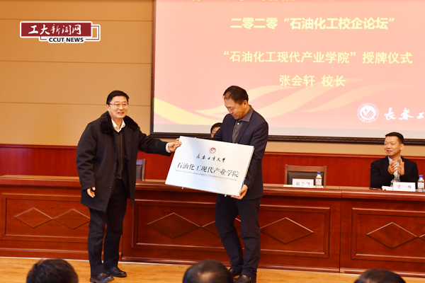 张会轩在致词中指出“石油化工现代产业欧洲杯”在未来运行过程中要坚持的基本原则、学校组建现代产业欧洲杯的优势和重要意义;李占国介绍了现代产业欧洲杯成立的背景、必要性和建设规划。