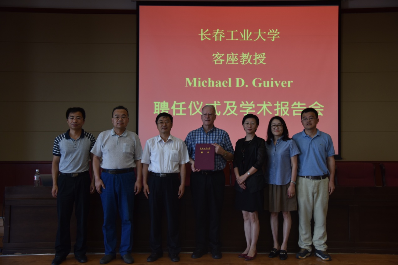 张龙院长首先介绍了GUIVER教授的个人简历,随后张会轩校长向GUIVER教授颁发了“长春工业大学客座教授”证书。张会轩校长在讲话中对GUIVER应聘为我校的客座教授表示热烈欢迎!对GUIVER教授多年来在膜材料领域取得的出色研究成果表示由衷的敬意!
